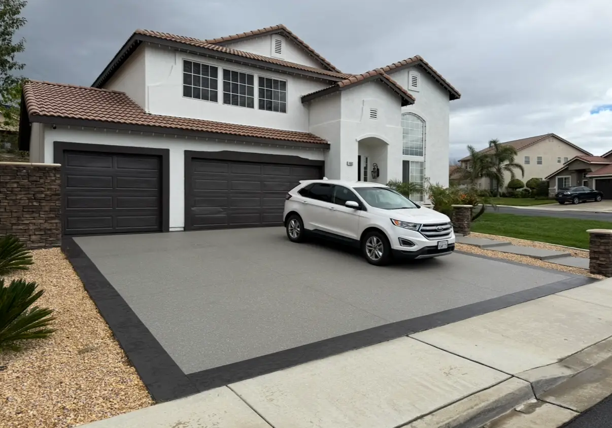 - Application of a high-performance Polyaspartic or epoxy base coat, colored to your preference.